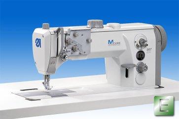 Single-needle lockstitch flat bed machine with bottom feed, needle feed and alternating feet and a maximum stitch length of 12 mm. The 867-190020 ECO is equipped with a large vertical hook. With the M-TYPE series a vision has become reality - a platform for medium heavy duty machines creating a new dimension of functionality and flexibility for all kinds of medium -weight applications. The lockstitch flat bed machine class 867, the first model of M-TYPE series, will set new standards. Above all, the modern design allows an enlarged clearance under the arm as well as a better view on the sewing area. The highly efficient sewing parameters combined with a great variety of equipment make the 867 an ideal operating means for universal use.
