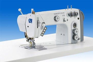 Single needle two thread-chainstitch machine with top puller feed, thread trimmer and integrated sewing drive