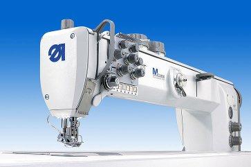 Sewing operations on large-sized, voluminous and padded home upholstery pieces require the use of longarm machines with large clearance, powerful material feed and long stitch lengths. The robust lockstitch longarm machines offer ideal conditions for these tasks. In order to counteract the frequent and cost-intensive bobbin change when processing large-sized workpieces the 867-290342-100 is equipped with XXL-hooks.