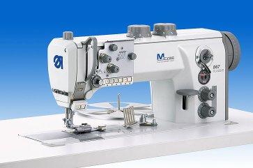 The precise, tension-free execution of binding operations on car mats and folding tops of convertibles requires the use of perfectly designed special machines. The new M-TYPE flat bed machine class 867-392342 with differential moving binding device for a tension-free tape feed, is optimally suited for the processing of flat workpieces with inner and outer radii.